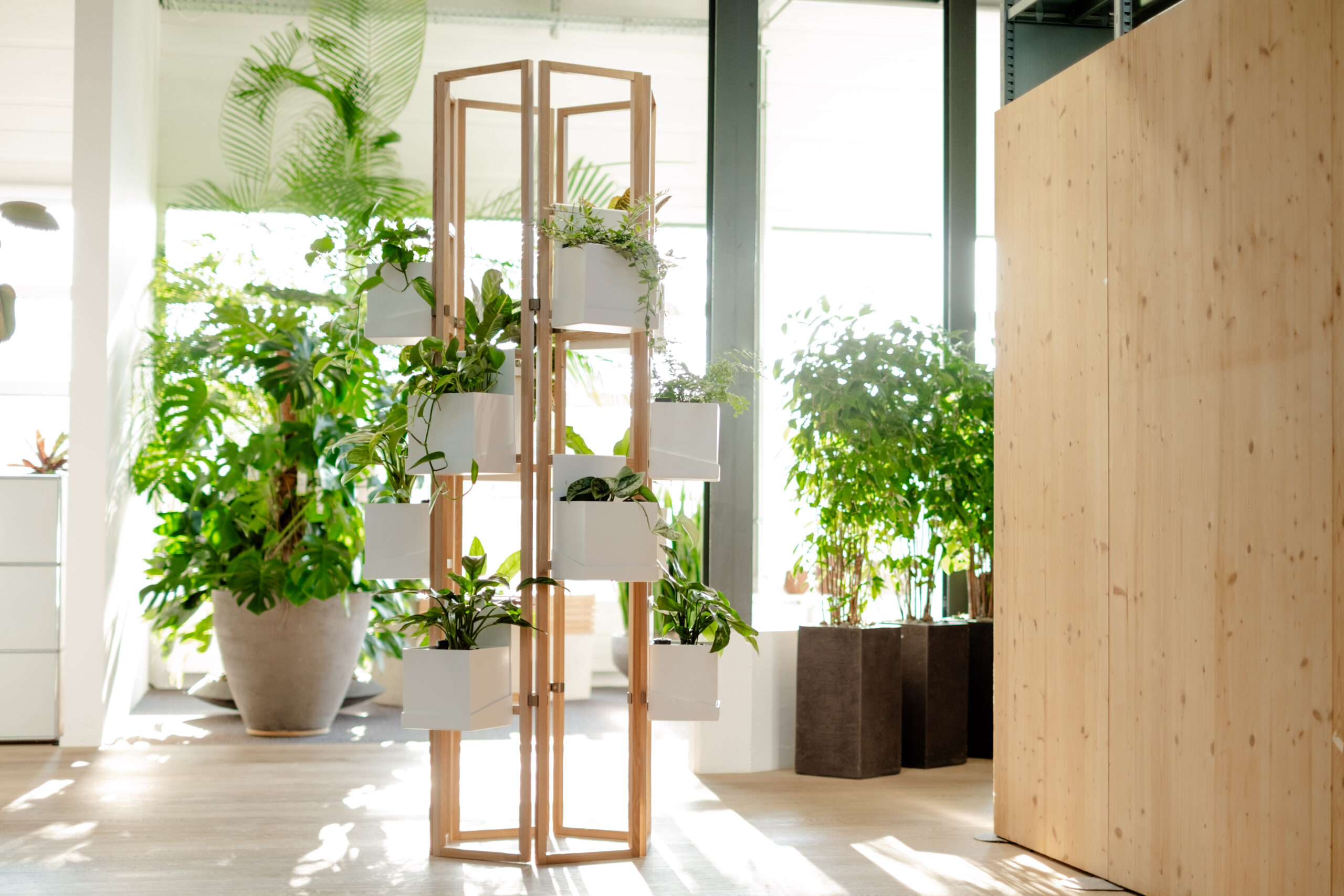 HP Greenstep wirkt auf den ersten Blick wie ein Möbelstück – und ist doch eher eine feine Geste, die die Luft, Akustik und Stimmung verbessert. Aus Eichenholz gefertigt, lässt es sich frei im Raum oder an der Wand platzieren, vertikal oder horizontal. Ganz individuell. Die Silent Walls wiederum sind Akustikelement, Raumteiler und grüne Kunst in einem. Das modulare System aus Rahmen und Akustikmatten aus recycelten PET-Flaschen lässt sich ebenfalls frei arrangieren. Ausserdem ist die Small-Version perfekt auf USM-Möbel abgestimmt – und zeigt, dass auch auf kleinem Raum grosse Wirkung möglich ist.